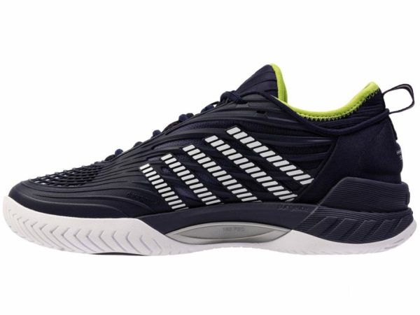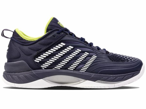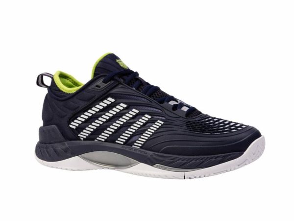 KSwiss Hypercourt Supreme 2 is the pinnacle model of the hyper family. This year we are introducing an updated version that will have a more secure fit, increased support, and higher durability still while providing maximum comfort. The upper has been constructed with Durawrap X for excellent support and drag protection while keeping a flexible feel as you sprint around the court. Dual-density midsole features a lightweight Surgelite external foam for maximum comfort and support. The high rebound Shock Spring inner foam on the forefoot allows quicker reaction in every step. The Dragguard 7.0 rubber outsole is formed into a modified herringbone tread pattern for traction and durability on all court surfaces. The newly engineered soft bootie collar gives a more secure fit around the ankle.