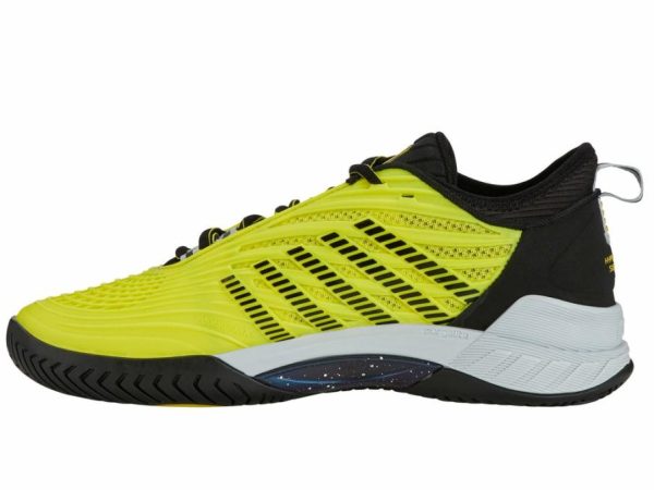 The Hypercourt Supreme 2 is the new hero model of the hyper family with a with a more secure fit, increased comfort, and maximum durability. Its newly engineered soft bootie collar gives a sturdier fit around the ankle, and Durawrap X upper offers drag protection with flexibility for sprinting on the court. A dual-density midsole with lightweight Surgelite external foam provides optimal support, while a high rebound Shock Spring inner foam on the forefoot allows quicker reaction in every step. The Dragguard 7.0 rubber HB outsole is designed with a herringbone tread pattern for excellent balance between grip and slide on all court surfaces.