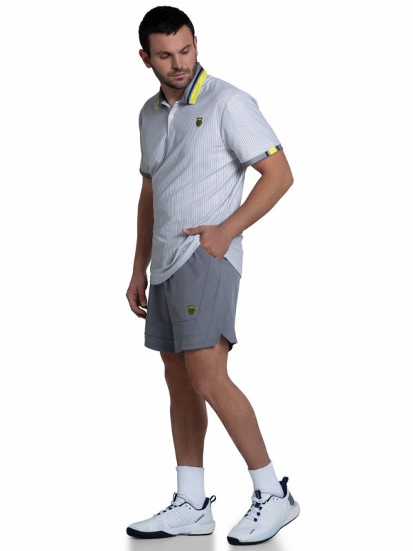 Get ready to strike in this modern performance pique polo. The moisture-wicking fabric keeps you cool and dry on the court while the houndstooth stripe print adds a level of sophistication to your presence on the court.