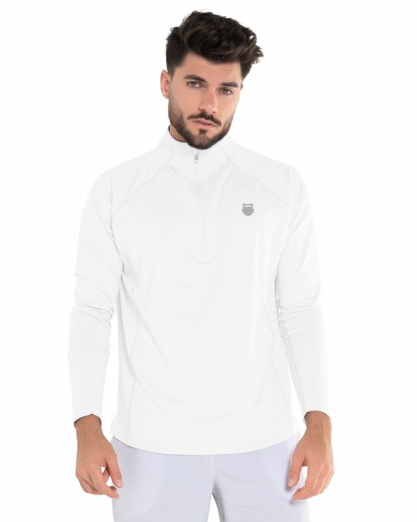 The perfect warmup long sleeve to get your game in gear. This White, lightweight long sleeve done in a mid-weight Performance Jersey has a 1/4 zip mock neck for added ventilation.