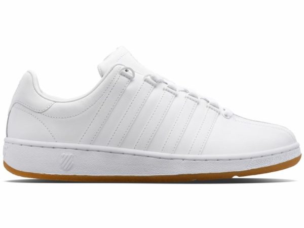 K-Swiss was founded in 1966 when two Swiss brothers, Art and Ernie Brunner, moved to California to create a footwear brand focused on tennis. As avid skiers and tennis players, the brothers took inspiration from leather ski boots to create a court shoe that supported the aggressive side-to-side movements of tennis. The result was the K-Swiss Classic, the first all-leather tennis shoe manufactured in Los Angeles, California. Over 50 years later that innovation is still the most recognized and bestselling style in our company and has achieved iconic status in the sneaker industry. The Classic VN is the 4th generation of the original shoe. It maintains the trademark elements featured on the first design: 5 stripes, D-ring lacing system, 3 piece toe construction and herringbone brick outsole tread, yet offers the addition of a heel tab that allows for a hint of color and our modern logos to represent the contemporary and progressive values of today’s brand. The Up-spec version of the VN modernizes our classic shoe with better materials, increased comfort, and improved sustainability. The upper features more premium full-grain leather. The shoe’s sustainability has improved by way of the addition of recycled PET linings and laces, internal components made using recycled ocean plastics, and more eco-friendly foam materials in the sock liner and internal midsole. Born out of innovation, the Classic has evolved into a statement of timeless simple design, an expression of our passion for quality and craftsmanship, and an enduring symbol of our authentic tennis heritage.
