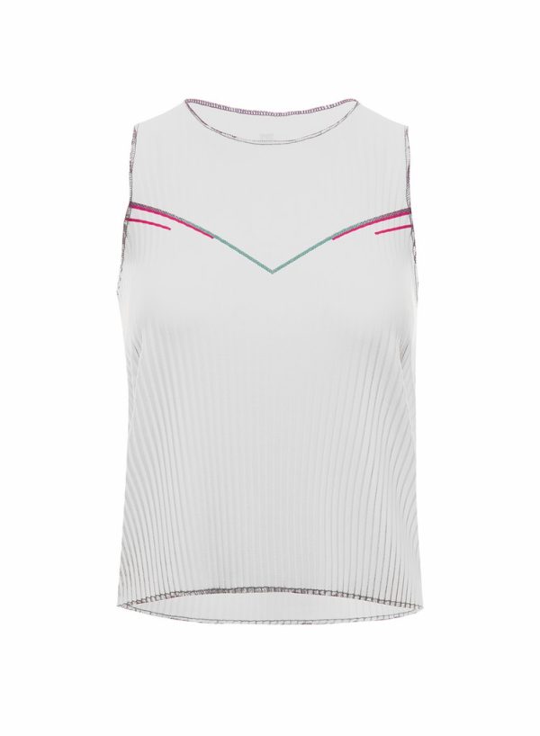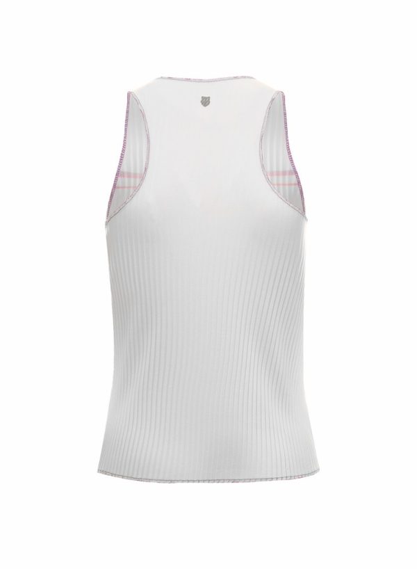 Designed to float on your body so you can float across the court. This featherweight tennis tank features pleating that provides air flow and no restrictions to your movement. Tipped with Amethyst, Angel and Silver for a pop of color, the tank also features a slighter higher neckline, fuller back and added sun protection as the fabric is rated UPF 50+.
