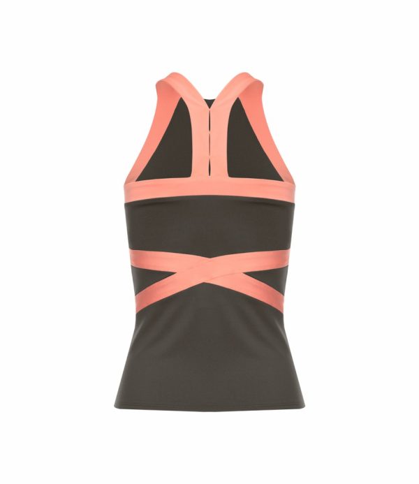 The women’s tennis tank has been updated with this racier compression top. Innovative design, moisture wicking performance and maximum breathability bring your performance an edge. The sophisticated design featuring a slightly higher neckline, bold color blocking and feminine strap racer back create an edgy look on and off the court.